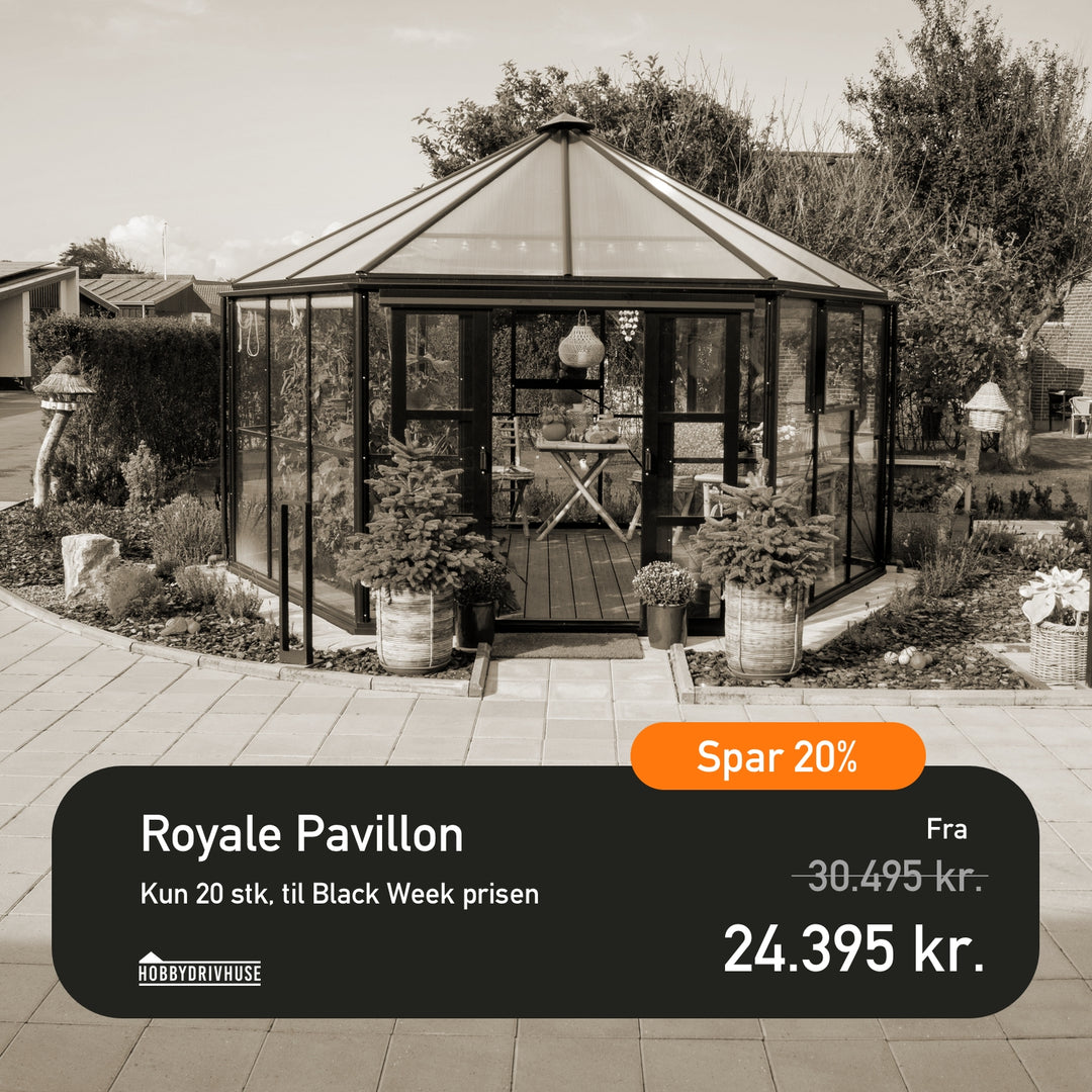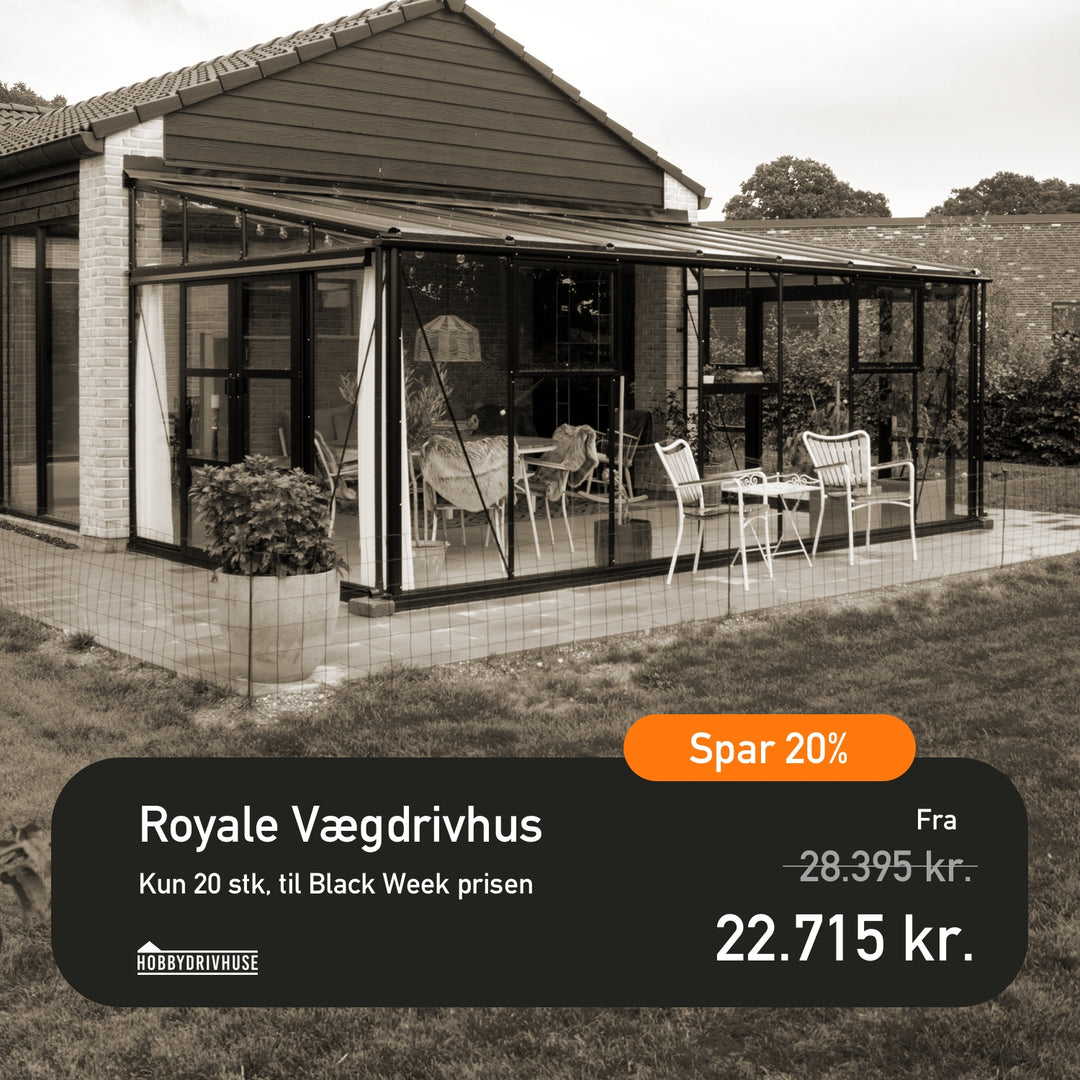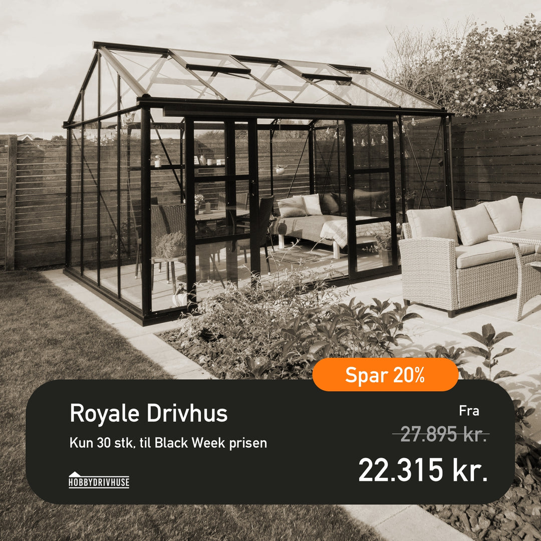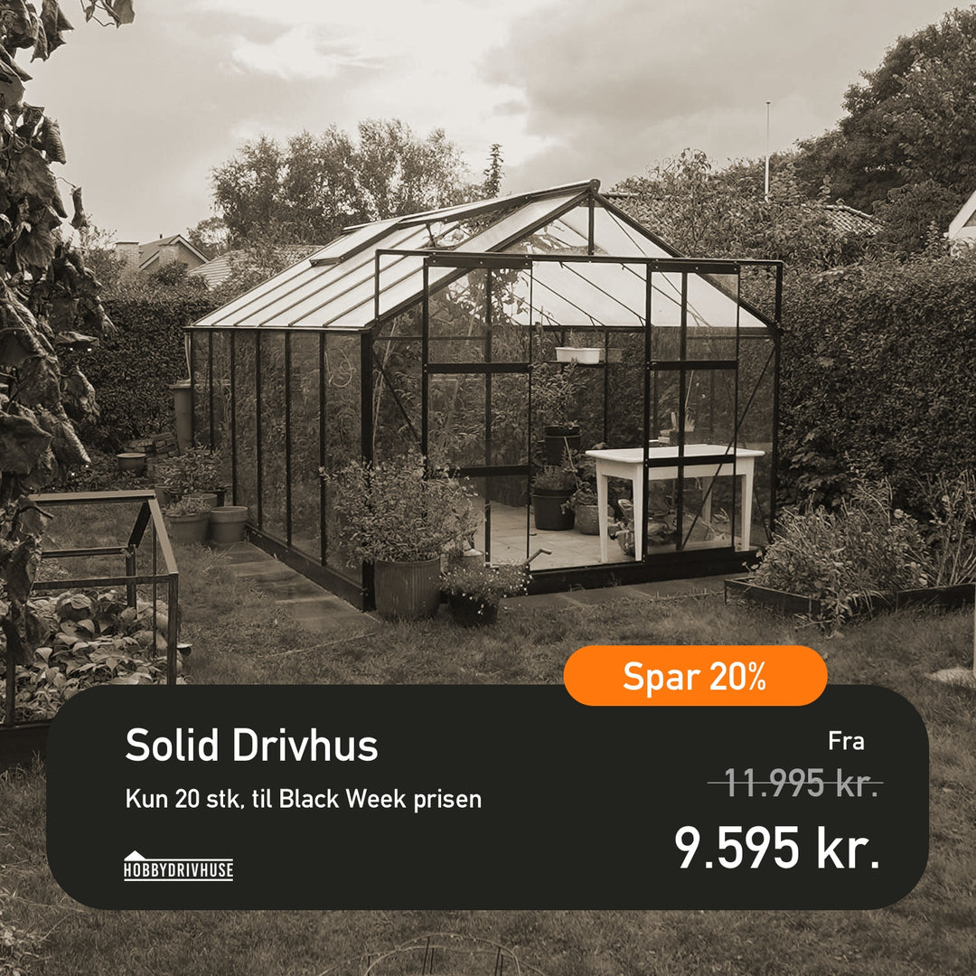 Fra den 24. november til den 30. november kan du spare stort på vores udvalg af kvalitetsdrivhuse, der er designet til at klare det skandinaviske vejr.