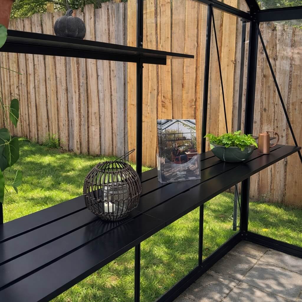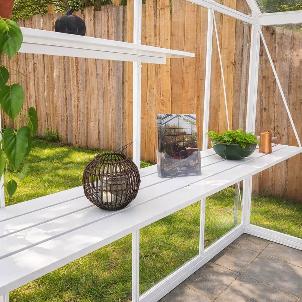 Hobbydrivhuse kan tilbyde deres egen modul opbygget hyldesystem, speciel tilpasset alle vore drivhus modeller. Der findes både smalle og bredde hylder.