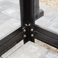 Deluxe Drivhus er bygget til at være både stærkt og stabilt. De lodrette hjørneprofiler, de yderste tagprofiler samt rygprofilet er konstrueret som rør-profiler, dvs. de er lukkede hule profiler, der gør dem væsentligt stærkere end traditionelle profiler. Denne forstærkede konstruktion sikrer, at drivhuset kan modstå kraftige vindstød og er yderst holdbart over tid. Glasset eller polycarbonatpladerne fastgøres med det samme unikke system som i vores andre drivhuse – T-profiler og halvmåneprofiler, der holder materialet sikkert på plads, selv under de mest udfordrende vejrforhold.