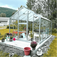 Du kan tilpasse dit Deluxe Drivhus efter dine behov. Vælg mellem 4 mm hærdet glas for et elegant og klart udseende, 10 mm polycarbonatplader for bedre isolering, eller en kombination af begge materialer for at få det bedste fra begge verdener. Denne fleksibilitet gør det nemt at skabe det perfekte drivhus til dit klima og dine præferencer.
