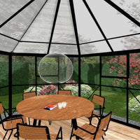 Deluxe Pavillonen er udstyret med dobbelte skydedøre, som giver let adgang. Med tre oplukkelige vinduer kan du nemt regulere ventilationen, så der altid er et behageligt indeklima. Den ekstra sidehøjde giver pavillonen en rummelig følelse og masser af plads til møbler og dekorationer.