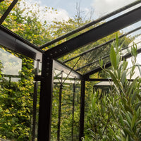 Royale Plus Drivhus tilbyder også valgfrihed, når det kommer til materialer. Vælg mellem 10 mm polycarbonatplader for maksimal isolering, 4 mm hærdet helbaneglas for et klart og stilrent look, eller en kombination af begge for at få det bedste fra to verdener. Drivhuset leveres også med nedløbsrør og flere tagvinduer for optimal ventilation og effektiv vandafledning.