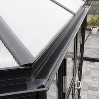 Tagpladerne er fremstillet i 6 mm polycarbonat for ekstra isolering, mens sidebeklædningen er lavet af 4 mm hærdet helbaneglas. Pavillonen kommer som standard med dobbelte hængslede døre eller dobbelte skydedøre, og der er mulighed for at tilkøbe ekstra dørsæt for endnu mere fleksibilitet.